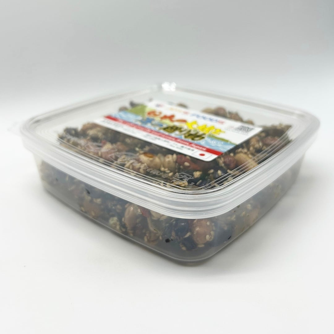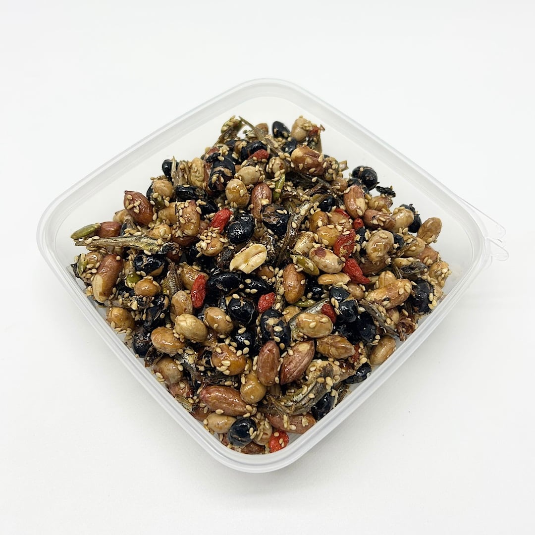 佃煮の職人さんが喜界島産の粗糖とグルテンフリー醤油だけで丁寧に煎った北海道産の白大豆や黒大豆、国産いりこの他に、落花生やかぼちゃの種、胡麻、クコの実を佃煮風に炊き上げました。栄養バランスを考え、豆や小魚を色々な具材と合わせた、老若男女、誰でも食べられる栄養豊富なおやつです。 お子様のおやつや、お茶うけなどに止まらない美味しさです!