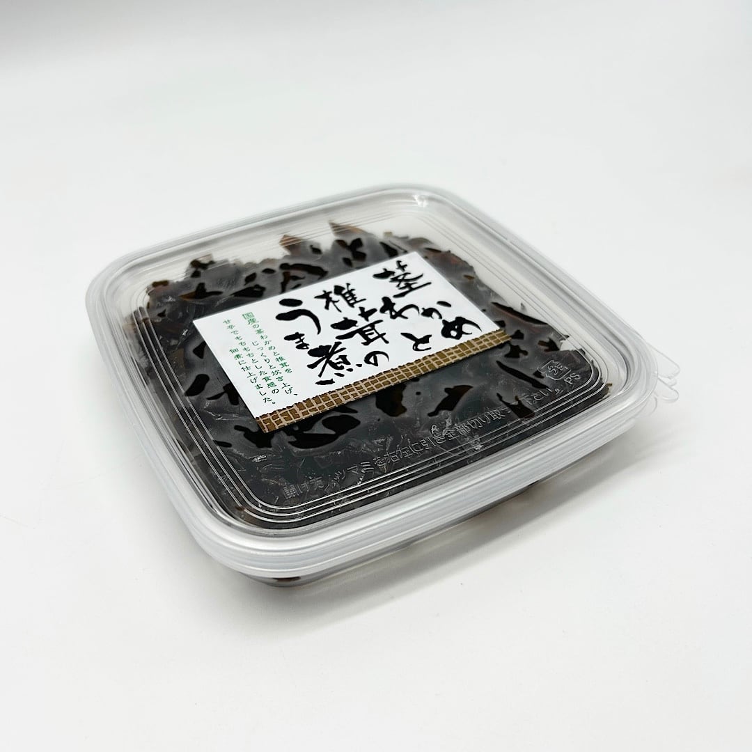 食感を残しつつ、柔らかく煮た新鮮な茎わかめと、煮汁をしっかり吸った椎茸が合わさることで旨味が凝縮され、程良い甘さが温かいご飯や、おにぎりの中具、お酒のつまみに最高です。是非一度ご賞味ください。